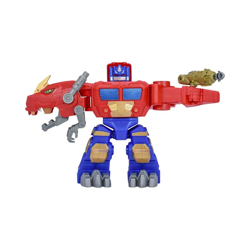 Figura de acción que se transforma entre dinosaurio y robot para vivir batallas llenas de imaginación. Incorpora lanzador de dardos, luces y sonido para amplificar la experiencia de juego y cuenta con compartimiento de almacenamiento. Desarrolla coordinación mano-ojo, resolución de problemas y juego simbólico.