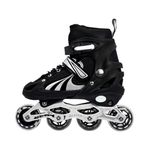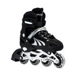 Los Patines en Línea No Limits Talla M Negro D-Win ofrecen una experiencia deportiva cómoda y segura. Su estructura metálica y bota acolchada con diseño ventilado brindan soporte al pie, mientras que el sistema de ajuste con cordones, velcro y broche asegura una sujeción firme durante el deslizamiento. Las ruedas alineadas de alto deslizamiento permiten mayor velocidad y control, fomentando la coordinación, el equilibrio y la resistencia física. Son ideales para quienes quieren iniciarse o perfeccionar su técnica en patinaje recreativo.