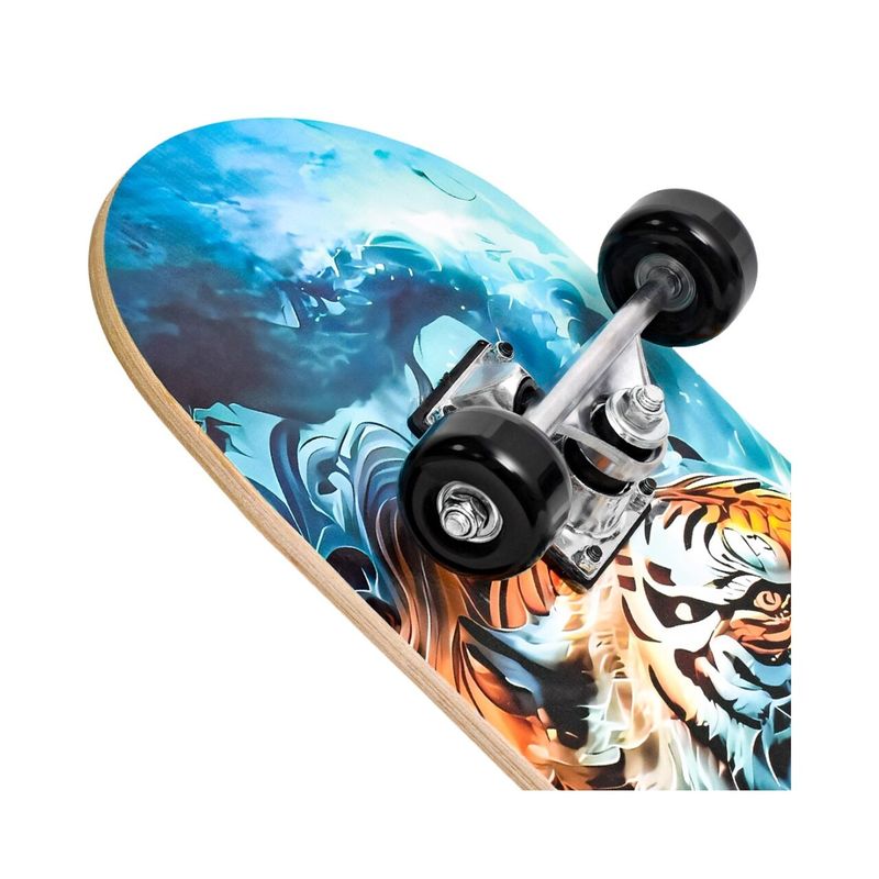 La Patineta de Madera Xtreme Wheels Tiger D-Win es una excelente opción para quienes quieren iniciarse en el mundo del skate recreativo. Su tabla de madera resistente con ilustración temática Tiger ofrece una superficie estable para apoyar los pies, mientras que sus cuatro ruedas y ejes metálicos garantizan un deslizamiento fluido. Es ideal para practicar equilibrio, coordinación motriz y control corporal, ya sea en recorridos suaves o en los primeros trucos básicos. Su diseño llamativo la convierte en un complemento perfecto para actividades al aire libre.