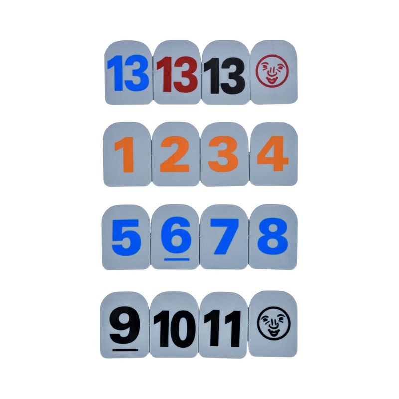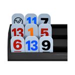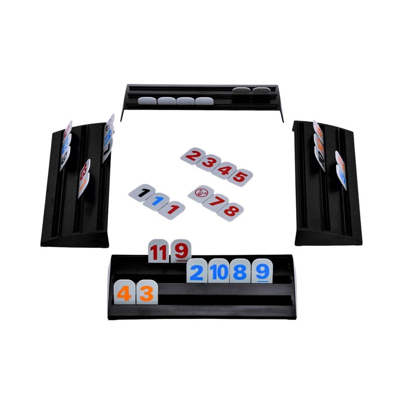 Version de mesa del clasico Rummy con fichas numericas y bases para organizar la estrategia. Forma trios, escaleras y combinaciones validas por turnos hasta quedarte sin fichas. Estimula logica y calculo.